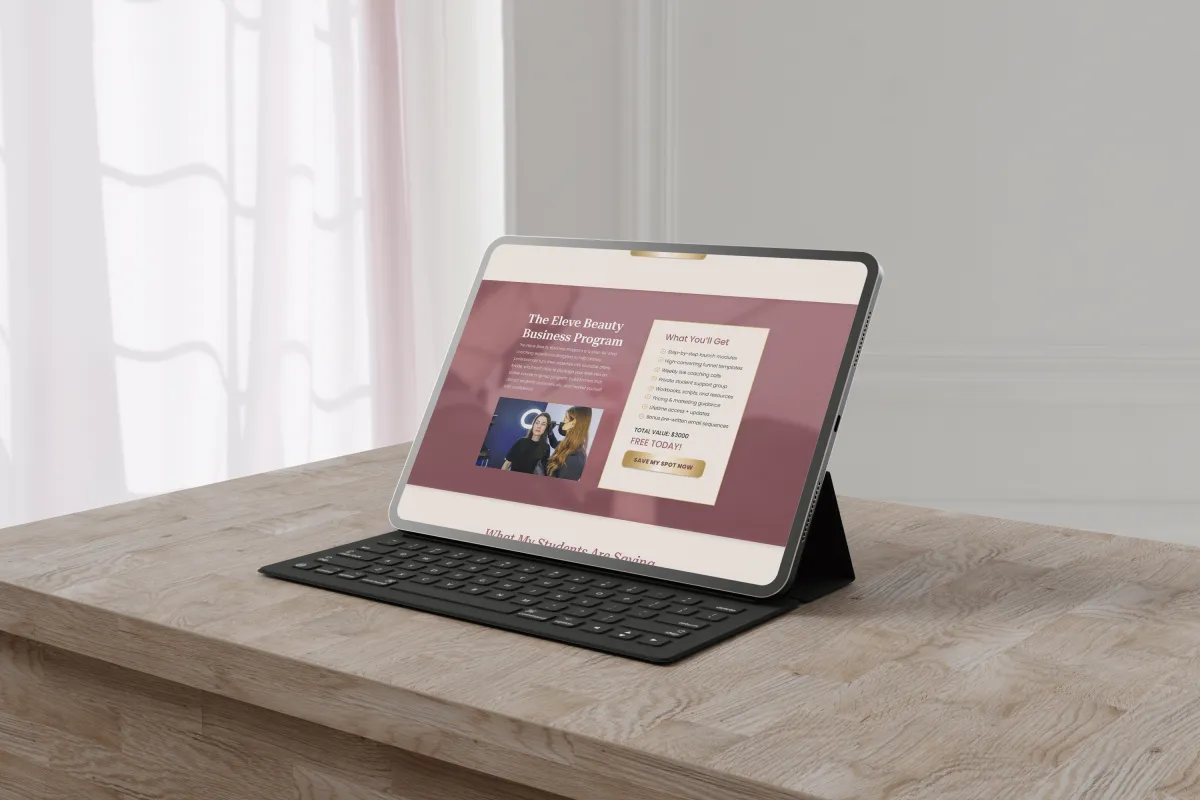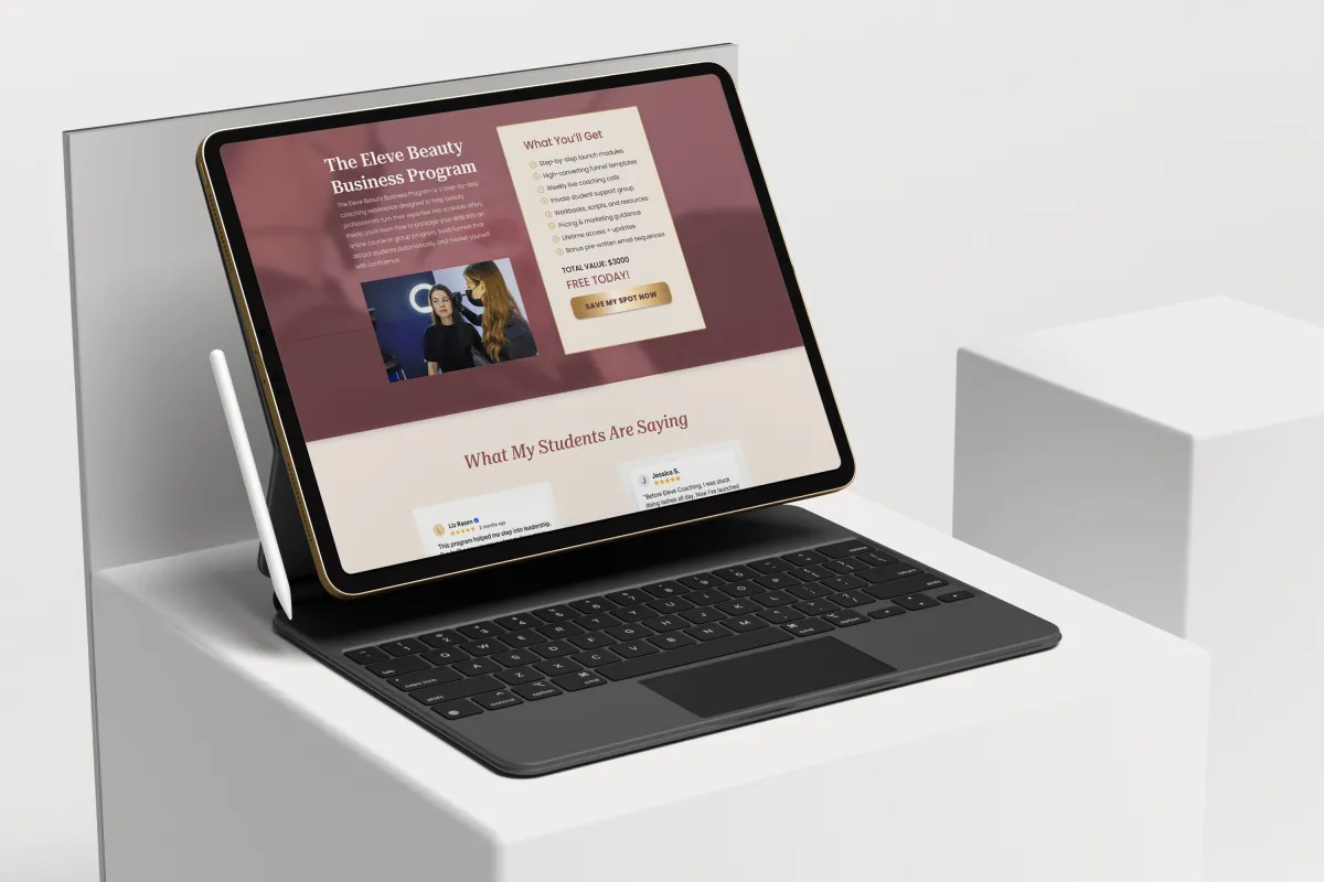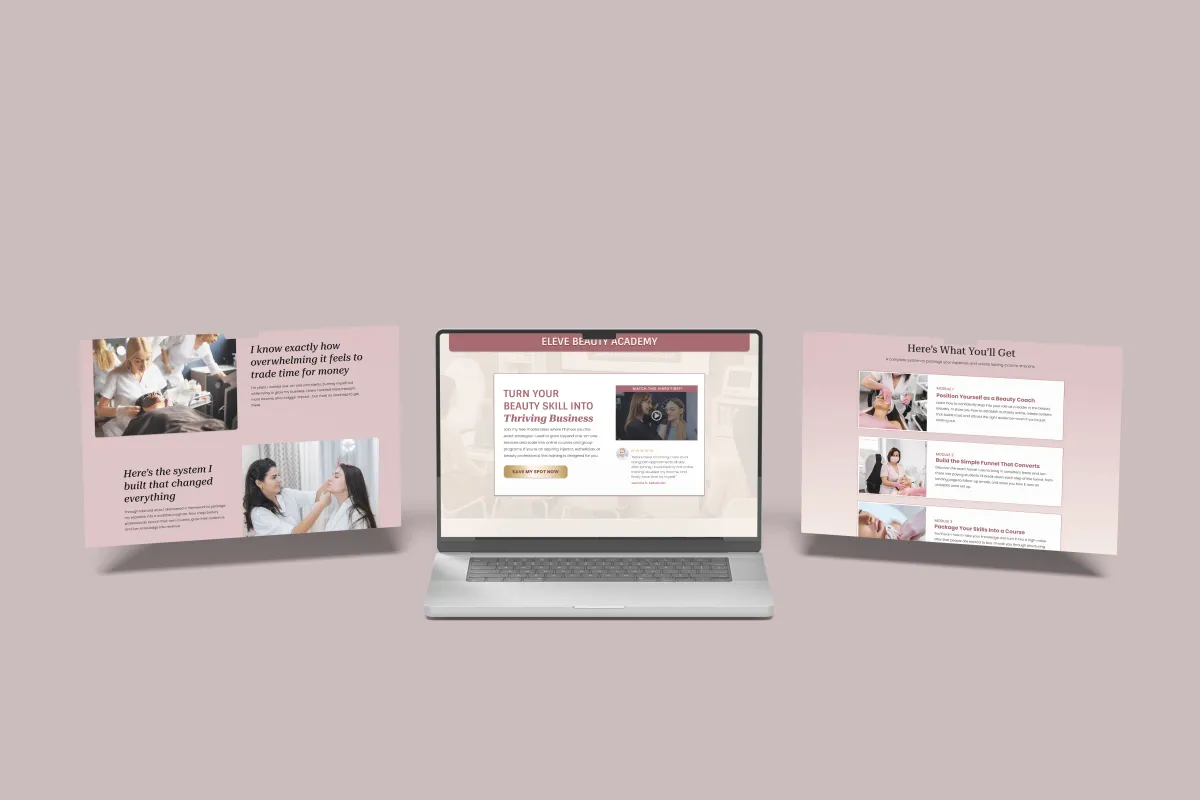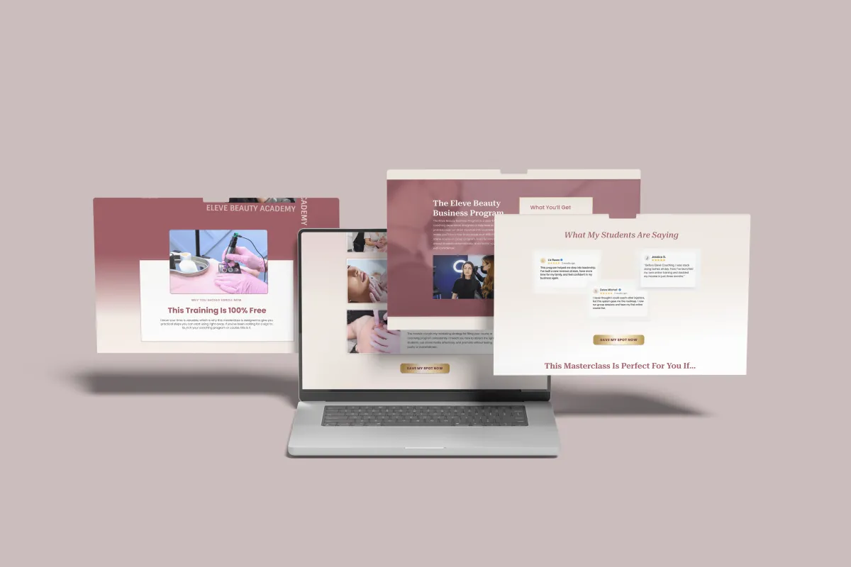 The Elevé Beauty Academy funnel was created for beauty coaches ready to scale their programs through automation. It educates, nurtures, and converts aspiring beauty professionals with storytelling, social proof, and clear value positioning. Each section leads the reader closer to enrolling, transforming leads into long-term students.